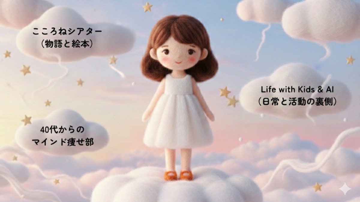 2児の母がAIで作る物語「こころねシアター」や、40代からの「マインド痩せ部」など、日々のワクワクを詰め込んだアトリエ『Sofa Life』のご挨拶です。疲れた時にふと立ち寄れる、優しい場所を目指しています。